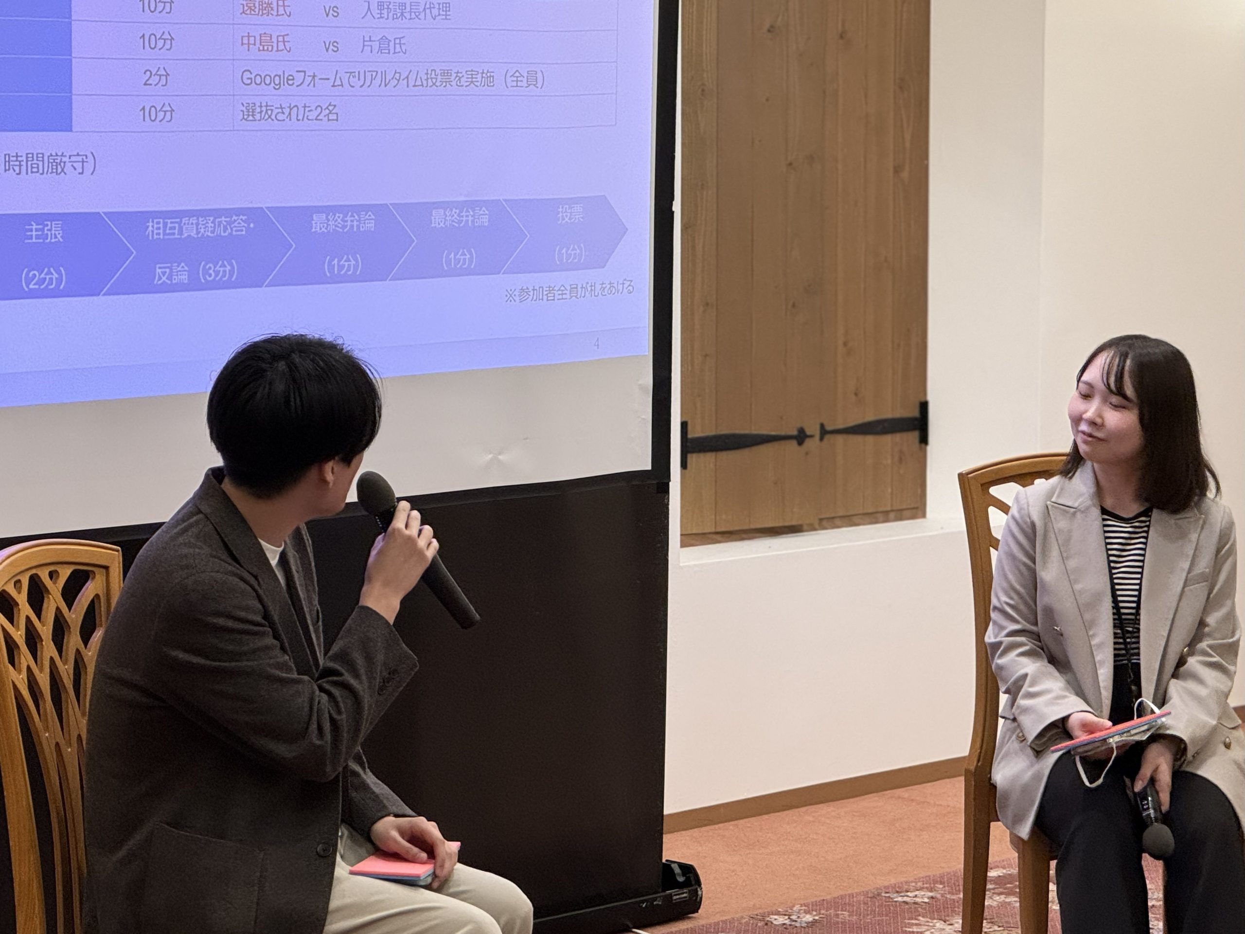 社員によるPMOディベート大会では、テーマを